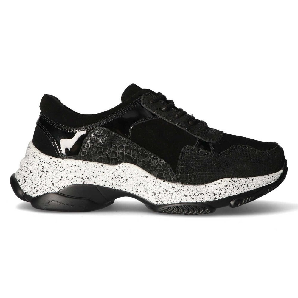O interior do calçado é forrado com material, o que garante ventilação adequada e uso agradável. A inserção de couro ecológico aumenta ainda mais o conforto de uso. O modelo está disponível na clássica cor preta, o que combina perfeitamente com vários estilos - do casual ao mais elegante.
