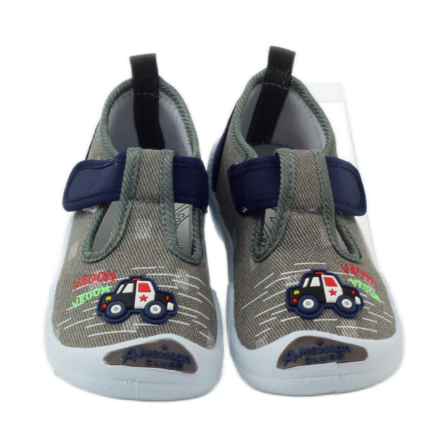 American Club Tênis infantil American Club cinza com velcro 105/2018 azul marinho