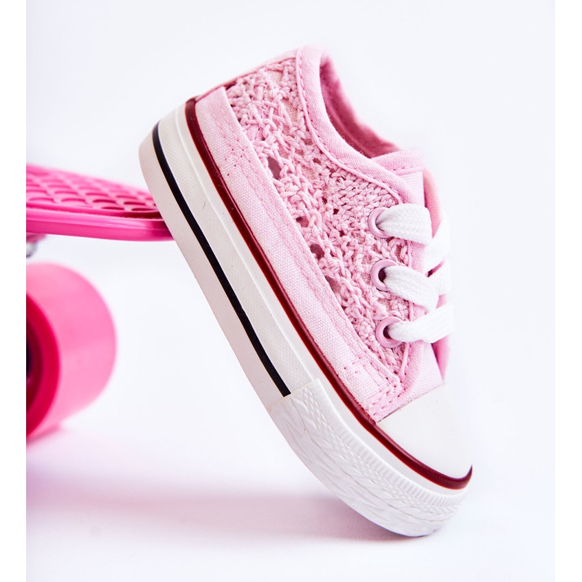 Detalhes: Tênis infantil com renda branca Roly-Poly rosa