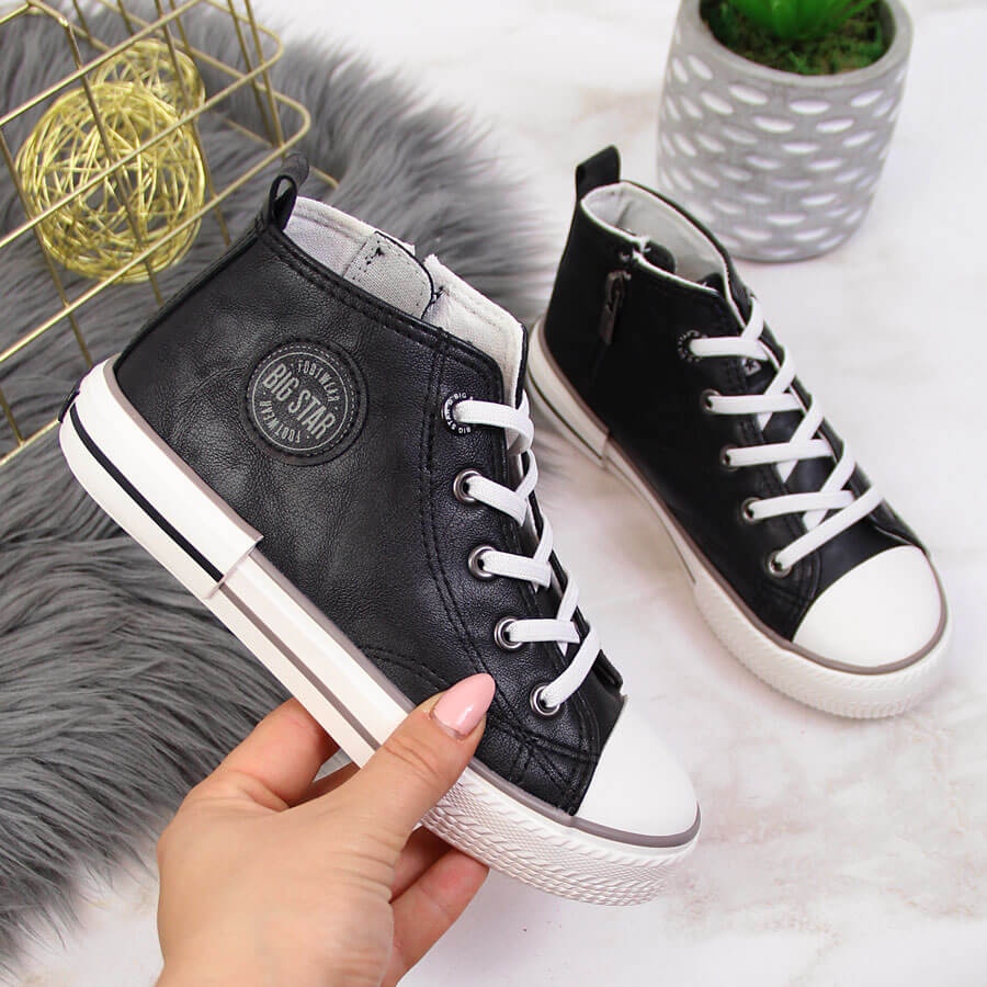 Tênis infantis Eco Leather Black Big Star II374003 - conforto e estilo todos os dias. Esses tênis altos da marca Big Star combinam um visual clássico com soluções práticas, fazendo -as funcionar enquanto tocam e em uma caminhada.