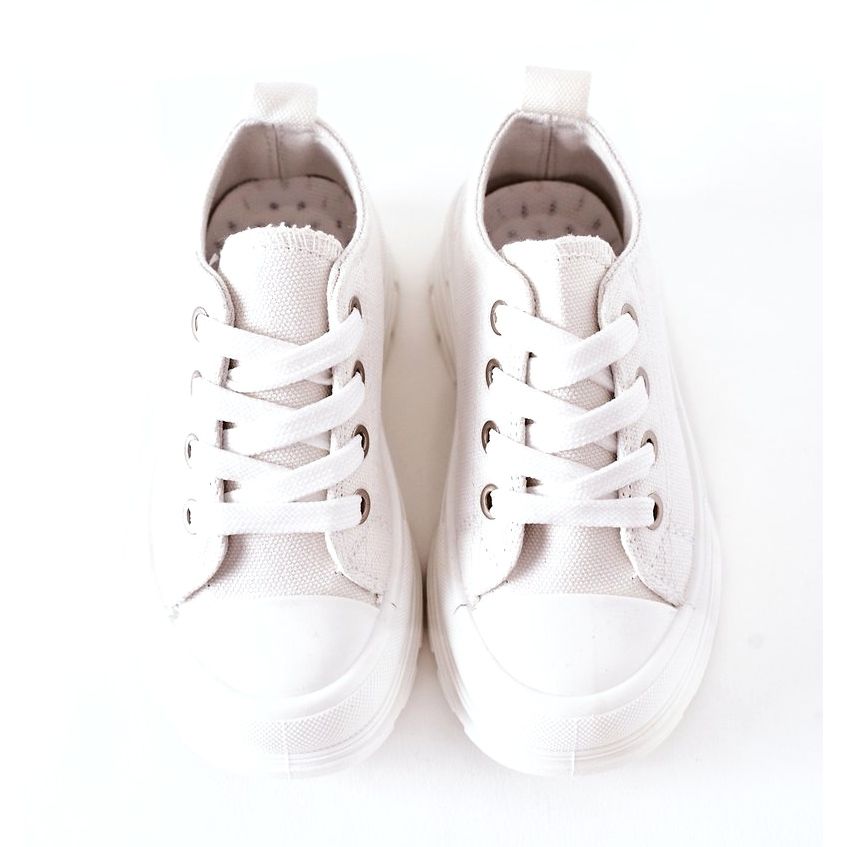 Tênis elegantes e práticos para meninas, feitos de tecido resistente à sujeira. A cor branca clássica e a plataforma elevada criam um modelo perfeito e ao mesmo tempo confortável todos os dias.