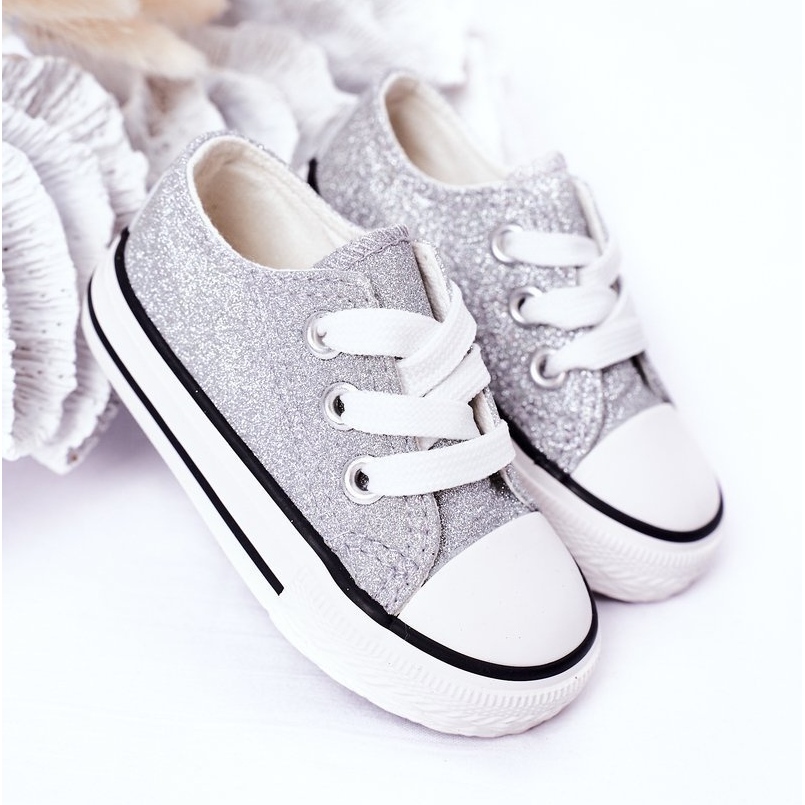 Inna marka Tênis Infantil Silver Glitter Bling-Bling prata