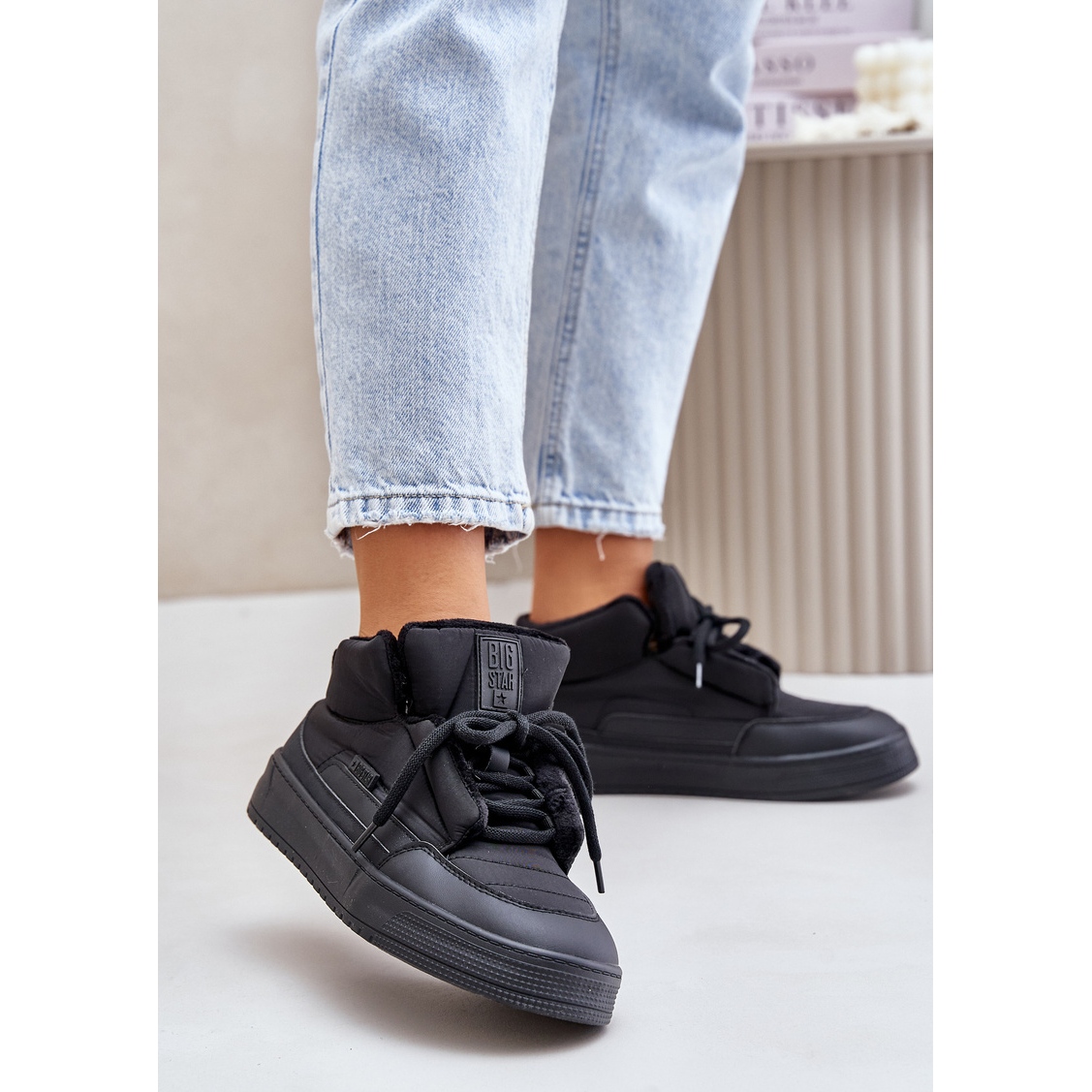 Os dias de inverno não precisam significar desistir de um estilo da moda! Tênis isolados femininos Big Star OO274A530 em uma cor preta elegante é uma combinação perfeita de conforto, funcionalidade e design de jovens.