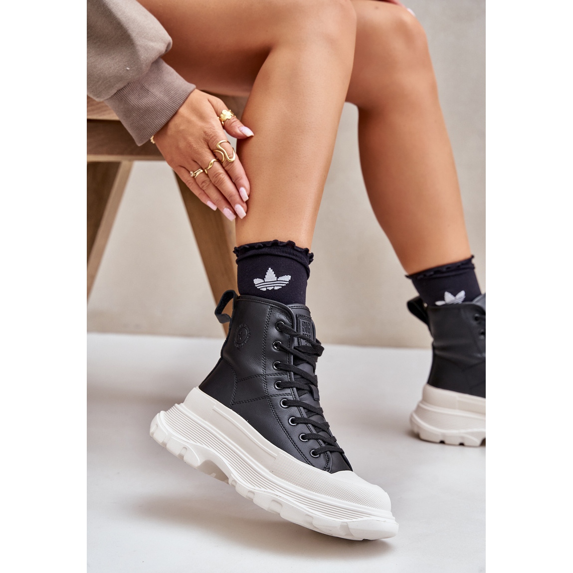 Detalhes: Tênis isolados de couro em plataforma enorme Big Star OO274A599 preto