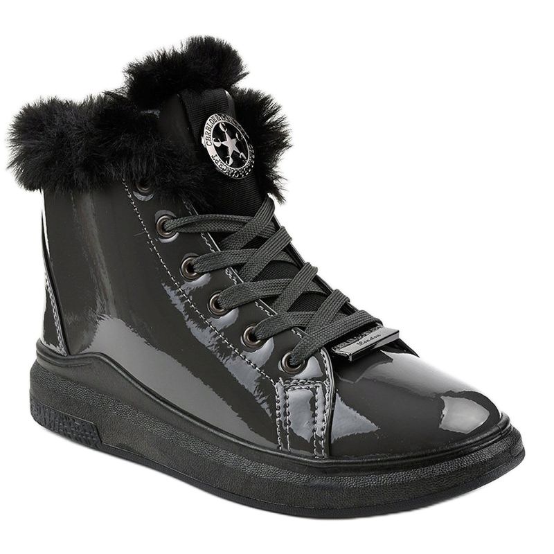 Os tênis TL135-7 cinza com verniz quente são a escolha perfeita para mulheres que valorizam um visual moderno e um estilo original. Estes tênis da marca Butymodne se diferenciam por um material semelhante ao couro envernizado de alta qualidade, que lhes confere um brilho elegante.