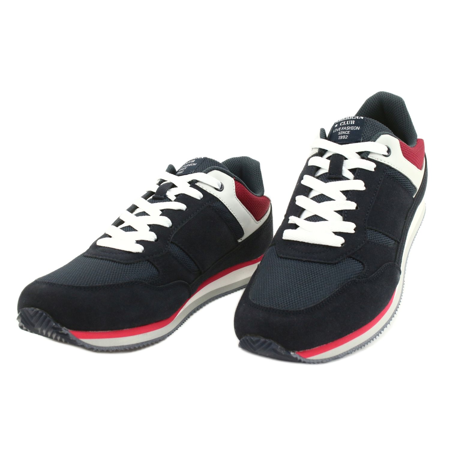 Apresentamos os calçados esportivos leves American Club FH12 nas cores branco, vermelho e azul marinho, perfeitos para homens de todas as idades. Esses calçados estilosos são uma combinação de couro camurça ecológico e material têxtil, o que garante não só um visual atraente, mas também conforto e funcionalidade.