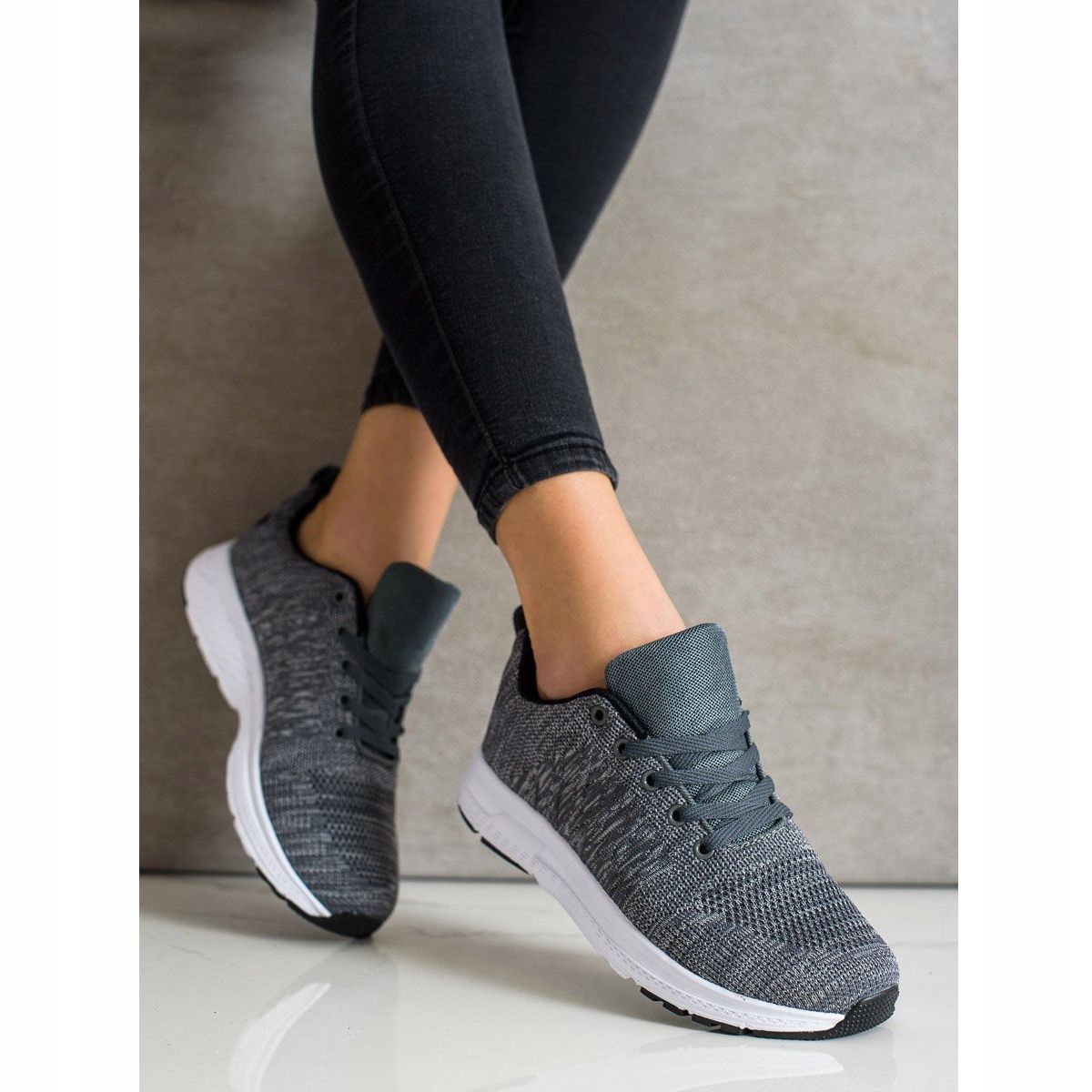 Detalhes: SHELOVET Tênis leves com cordões cinza