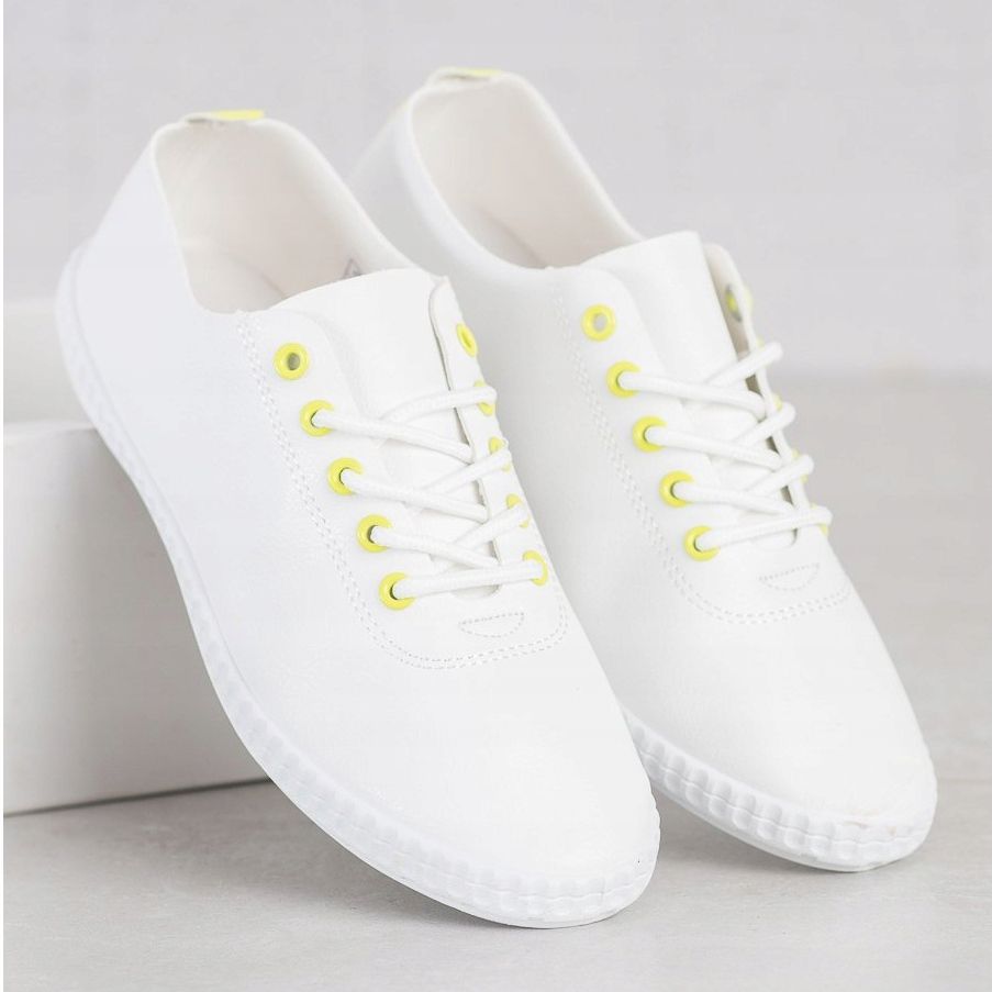 **Tênis leves SHELOVET confeccionados em couro ecológico branco amarelo**
