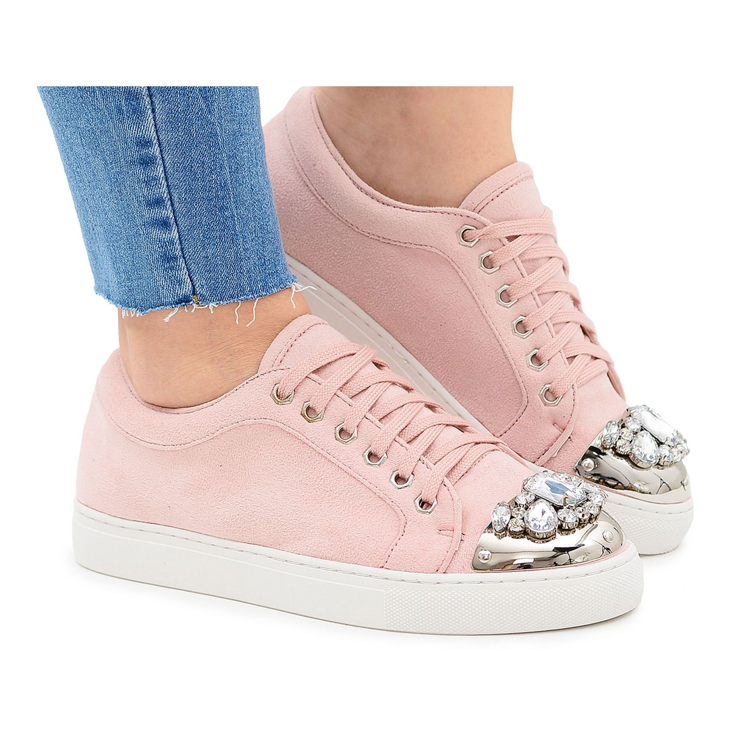 Os tênis são cuidadosamente confeccionados em camurça ecológica, o que garante durabilidade e um material agradável ao toque. Além disso, a palmilha em couro ecológico garante excelente amortecimento, o que torna cada passo um puro prazer. Não se pode ignorar os cristais brilhantes que lhes conferem um charme único e os tornam perfeitos para usar em ocasiões especiais e também no dia a dia.
