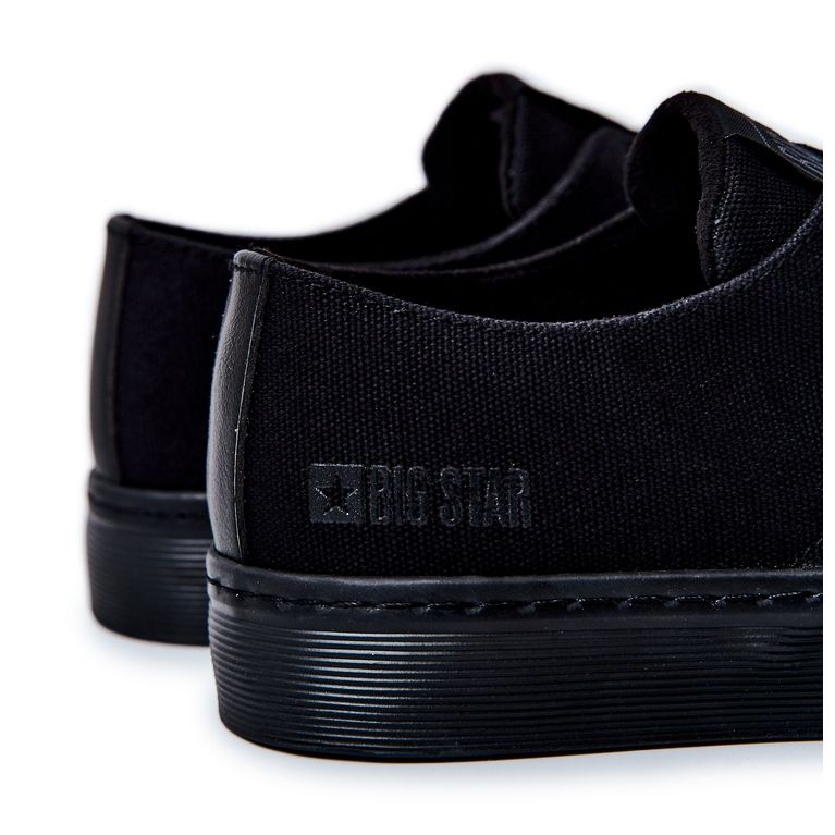 Tênis masculinos elegantes e confortáveis da marca Polish Big Star em uma cor preta universal. A parte superior é feita de material têxtil durável, o interior é finalizado com um material de camurça ecológica suave e a inserção do material garante conforto o dia todo. O modelo está equipado com laço que permite combinar perfeitamente com o pé e a fixação endurecida para melhor estabilização. Os sapatos têm uma plataforma sutil e uma sola não -escravo, o que aumenta a adesão e o conforto do uso.