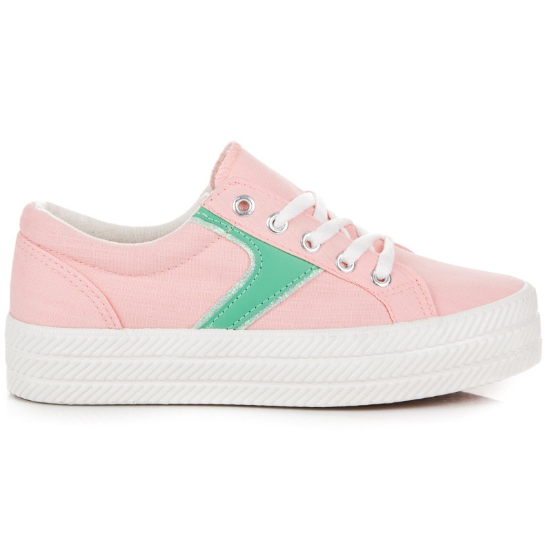 Os tênis plataforma Kylie em tom rosa são a escolha perfeita para mulheres que querem aliar conforto com elegância. Estes sapatos elegantes distinguem-se pelo seu corte único e feminino e pelas cores subtis que chamam a atenção. Uma plataforma grossa com 3,5 cm de altura acrescenta não só leveza, mas também garante estabilidade ao caminhar.