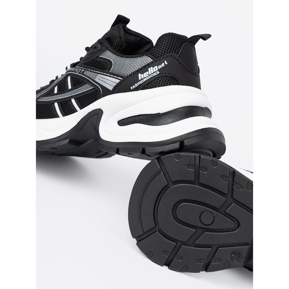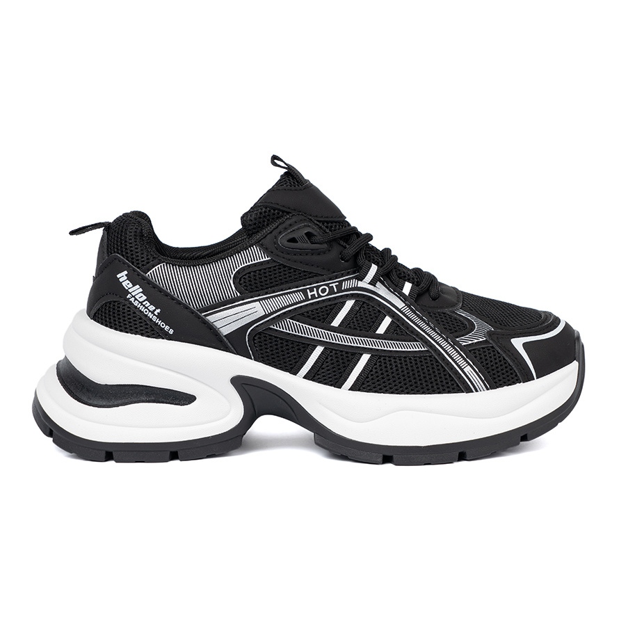 Shelvt Shelvt Tênis negros com uma parte superior respirável e uma sola branca enorme preto