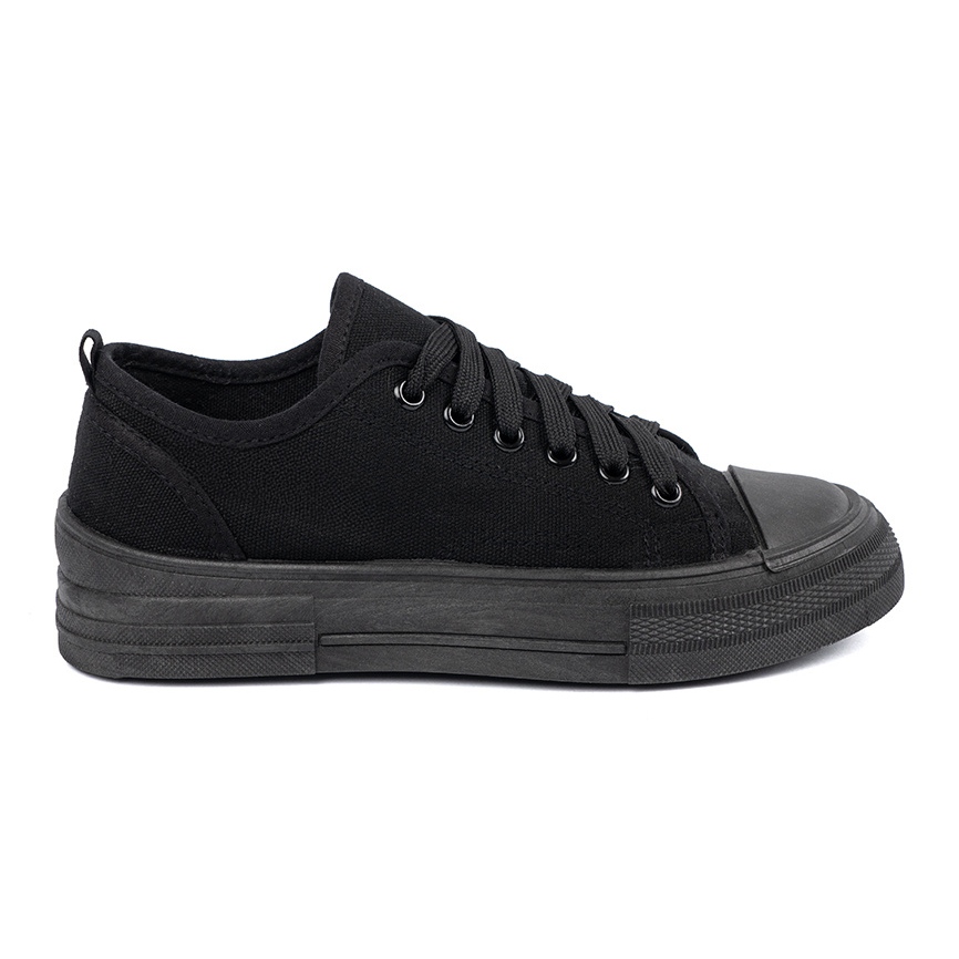 Detalhes: Shelvt Tênis negros confortáveis com um ponto superior curto preto