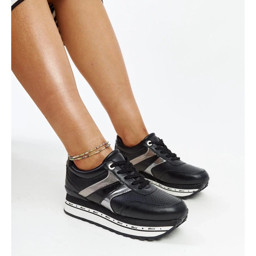 Detalhes: Tênis negros na sola alta de Mehari preto