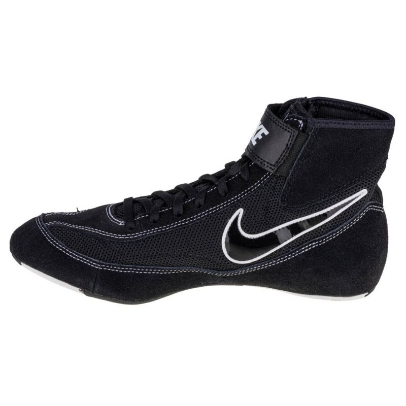 Apresentamos os calçados de luta livre masculinos Nike Speedsweep VII M, modelo 366683-001, pensados para pessoas que apostam na eficiência e no conforto durante treinos intensos. Estes sapatos pretos são a escolha perfeita para os amantes de luta livre, boxe, MMA, Krav Maga e artes marciais mistas.