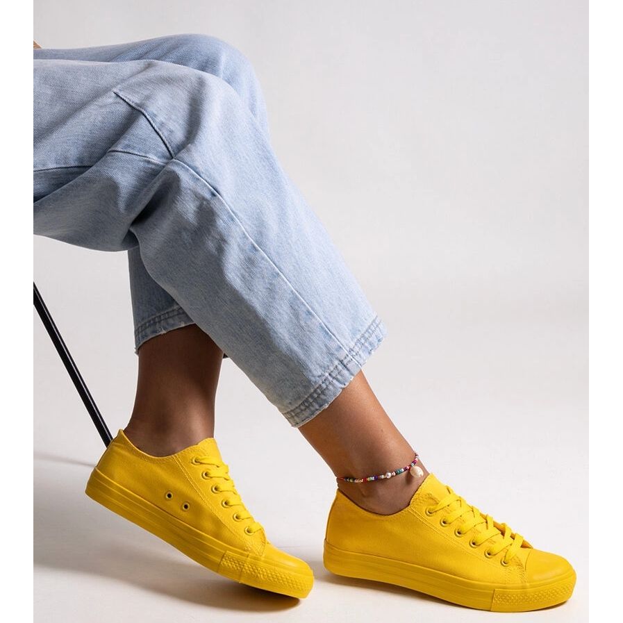 O fecho atado permite um ajuste individual ao pé, o que os torna não apenas estéticos, mas também práticos. A cor amarela certamente adicionará energia a qualquer estilização, tornando cada passo alegre e cheio de vida.