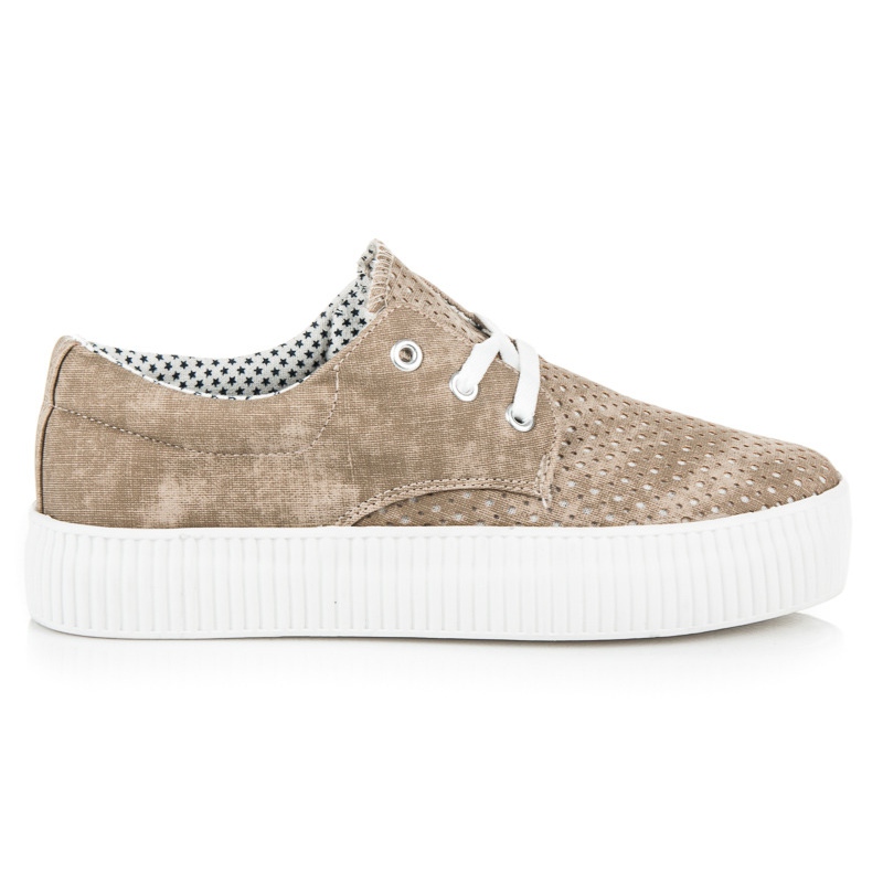 Apresentamos os tênis plataforma marrons vazados da marca Kylie - a escolha perfeita para mulheres que valorizam um calçado moderno e confortável para o dia a dia. Feitos em couro ecológico de alta qualidade, esses tênis combinam estilo e funcionalidade. As decorações perfuradas em toda a superfície conferem-lhes um carácter moderno que chama a atenção e se destaca dos modelos clássicos.