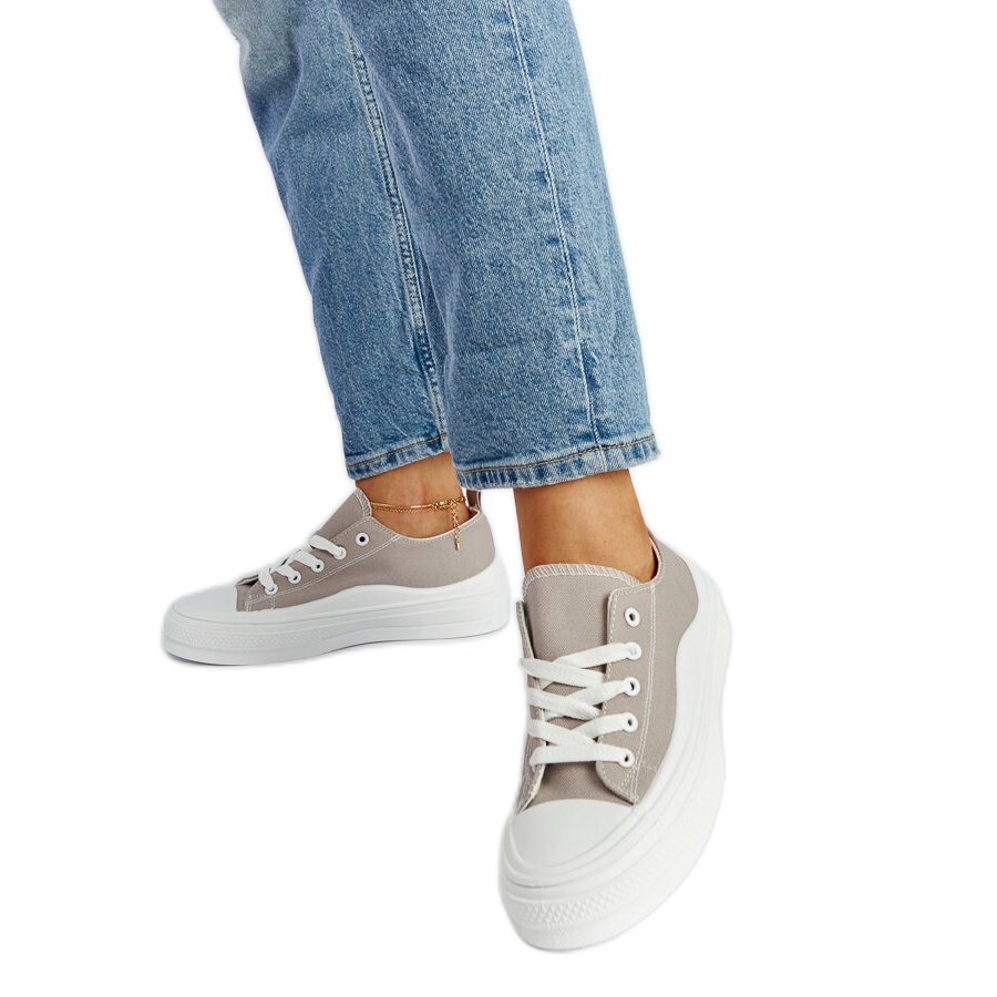 Descubra o calçado perfeito para os dias de verão - tênis cinza na plataforma Blais! Esses tênis elegantes e modernos são uma combinação de conforto e design da moda, o que certamente atrairá a atenção. Feito de tecido de alta qualidade, eles têm um nariz redondo, o que lhes dá um charme único. Equipados com um fecho de renda, eles garantem um ajuste perfeito para qualquer pé, o que faz usá -los um verdadeiro prazer.