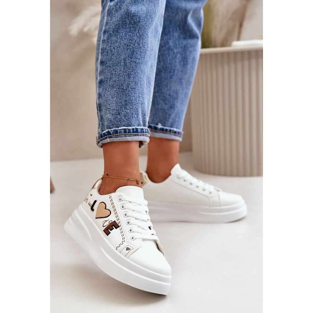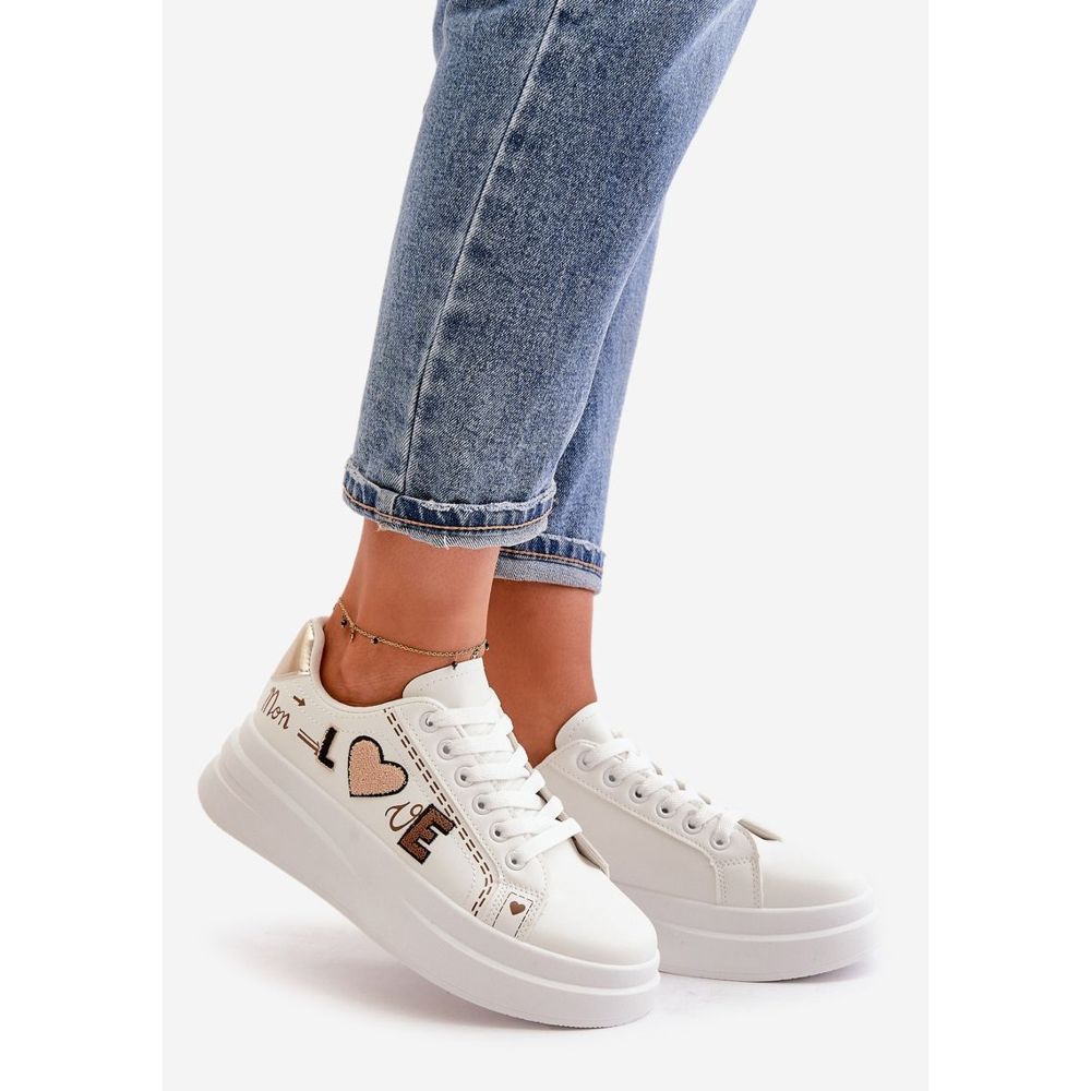 Detalhes: Tênis plataforma feminino com inscrição decorativa de amor, branco Orlian