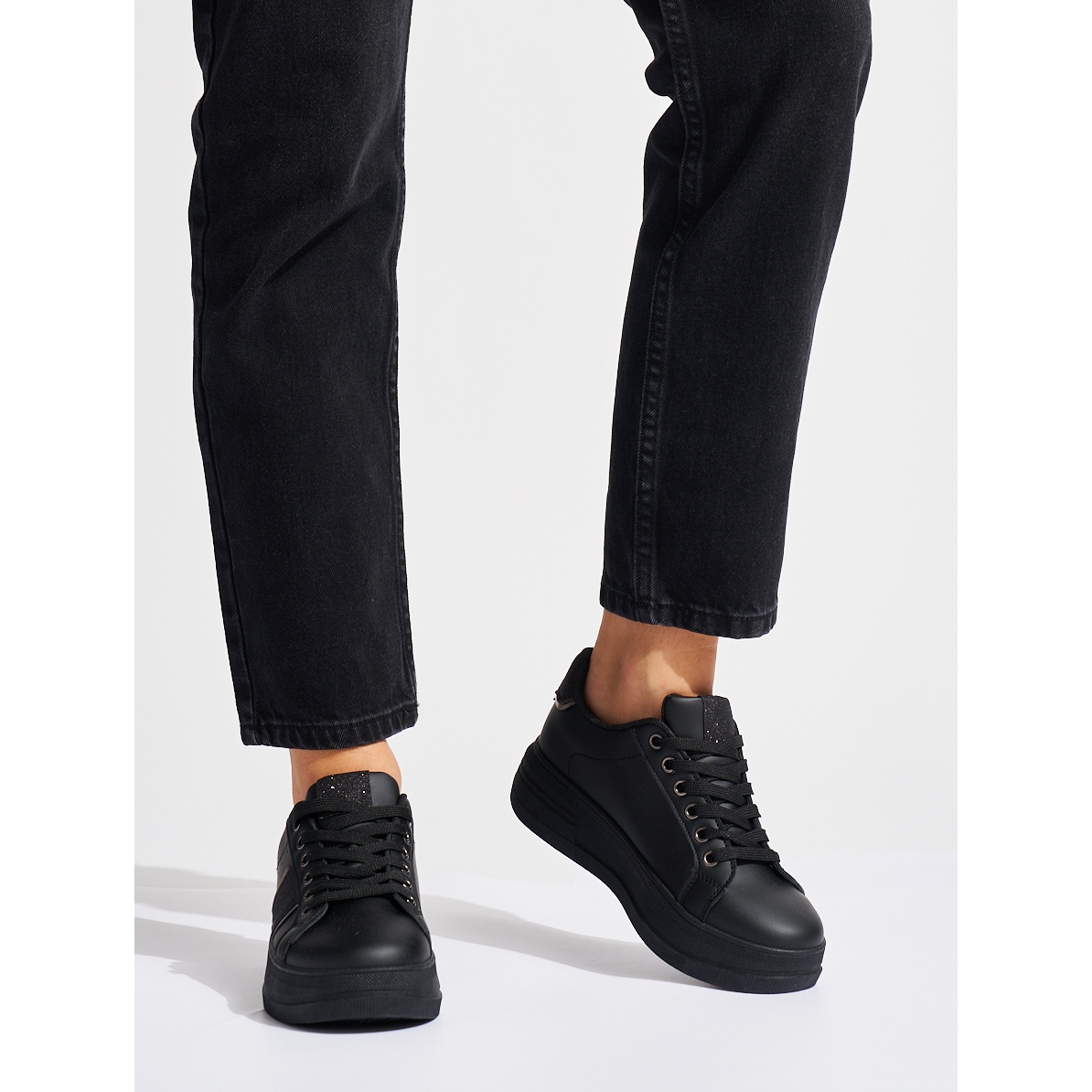 Descubra a nova face da elegância esportiva com os tênis das mulheres negras na plataforma de outra marca. Esses sapatos elegantes são a combinação perfeita de conforto e design da moda, que funcionará em todas as situações diárias. Graças à plataforma de 4 cm de alta, você não apenas ganhará altura adicional, mas também conforto e estabilidade ao usar.