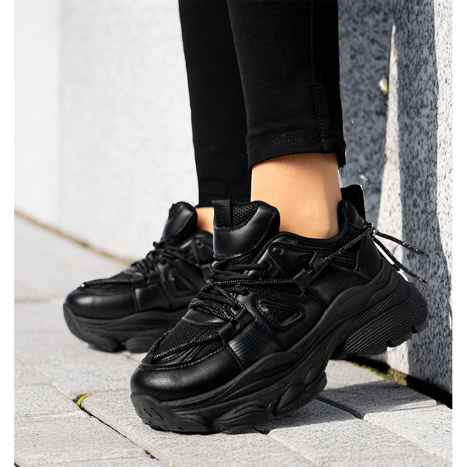 Descubra a nova face da moda com os tênis femininos na plataforma preta em uma elegante cor preta. Esses sapatos esportivos de renda são uma estação obrigatória, ideal para mulheres que desejam combinar conforto com design da moda. A sola maciça e ultra -moderna de 5 cm de altura enfatiza a natureza incomum dos calçados, e os cadarços brilhantes dão a eles um charme único.
