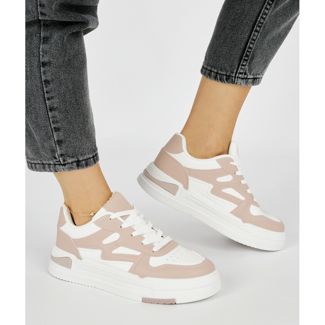 Construído -in, salto macio e nariz redondo garantem conforto diariamente. O laço clássico permite que você combine sapatos facilmente com o pé, o que aumenta o conforto durante longas caminhadas ou atividades esportivas. Os tênis estão disponíveis em uma cor rosa da moda com detalhes em branco que combinam perfeitamente com as últimas tendências.