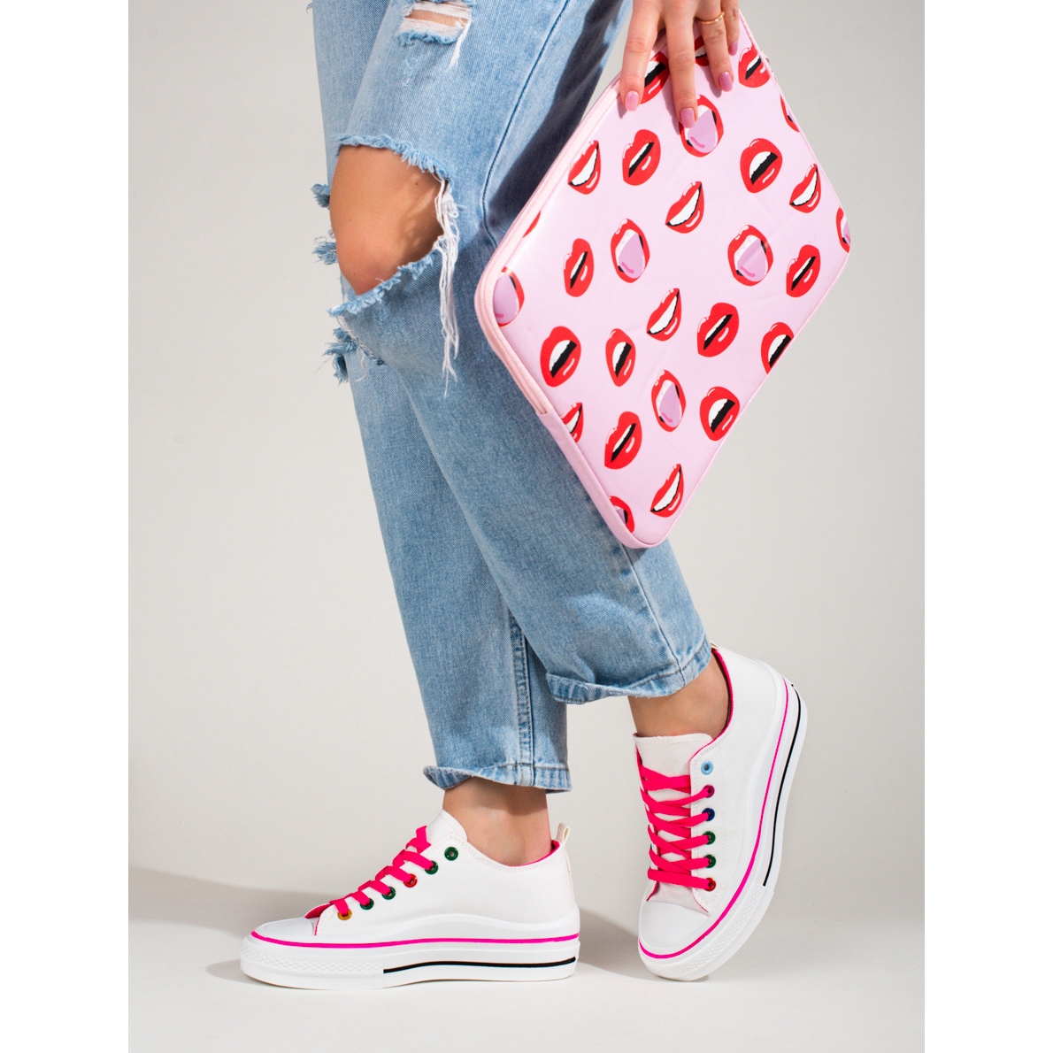 A coleção KeeShoes da SHELOVET enriquece o mercado calçadista com soluções modernas e elegantes, mantendo o espírito dos clássicos. O tênis plataforma Shelovet branco com detalhes em rosa sem dúvida se destacará na selva urbana, sendo ao mesmo tempo um símbolo de conforto e bom gosto. Sem tratamentos decorativos estampados, são uma excelente opção para os amantes do minimalismo que valorizam a sutileza e a funcionalidade na moda.