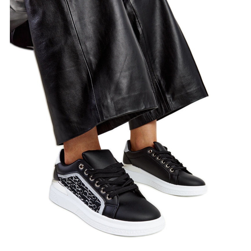 Tênis negros em uma plataforma com Fekte para glitter must-out em todo guarda-roupa de primavera! Eles são caracterizados por um corte baixo e um nariz redondo, o que os torna extremamente confortáveis e perfeitos para longos dias passados ao ar livre. Graças ao fixador atado, você pode combiná -los facilmente ao seu pé, o que garante um conforto ainda maior.