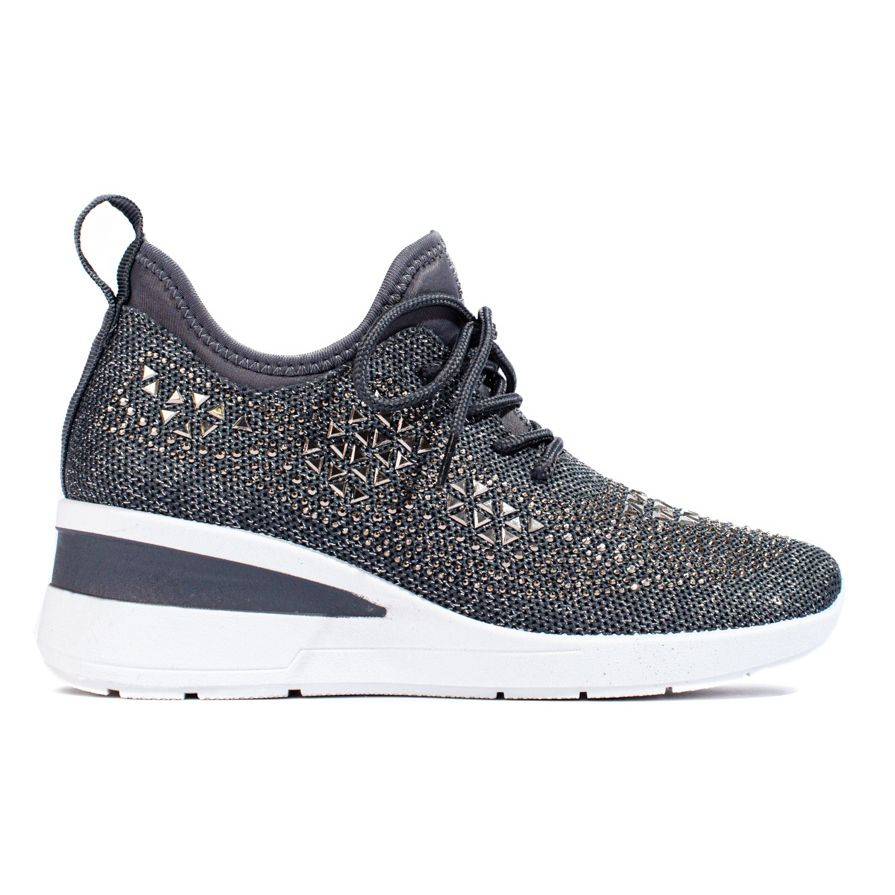 Oferecemos tênis exclusivos de cunha têxtil da marca Shelovet, que serão a escolha perfeita para todos os dias. Estes elegantes calçados esportivos em um elegante tom de cinza certamente atrairão a atenção por sua estética única. A combinação de conforto e detalhes da moda, como strass e strass, os torna perfeitos tanto para estilos casuais quanto mais casuais.