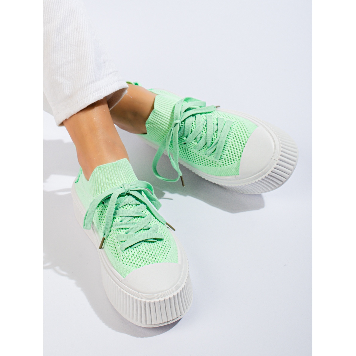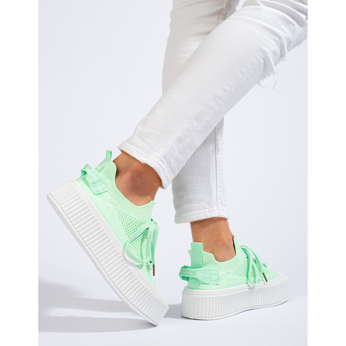 O tênis plataforma é um calçado que combina conforto com design moderno. O modelo oferecido pela marca SHELOVET é uma resposta às necessidades das mulheres que valorizam a combinação da indiferença desportiva com um toque fashion. Os tênis vazados verdes claros apresentados são uma ótima opção para os dias mais quentes do ano - perfeitos para a primavera e o verão.