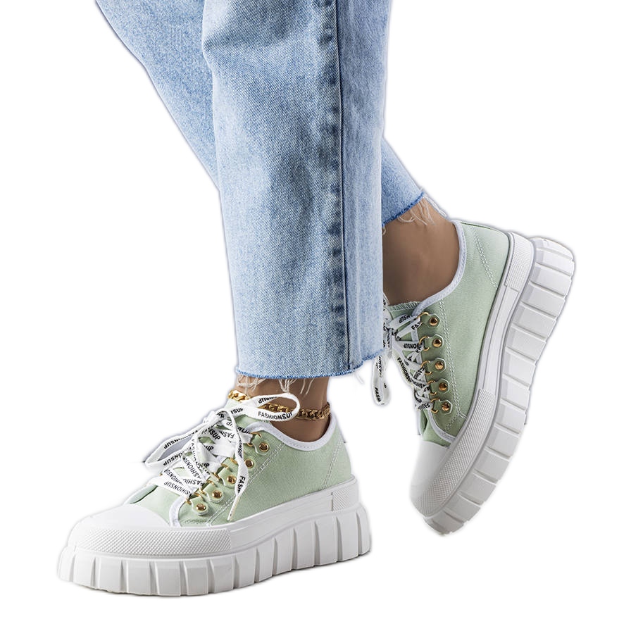 Tênis verdes na plataforma Toni - estilo e conveniência em um