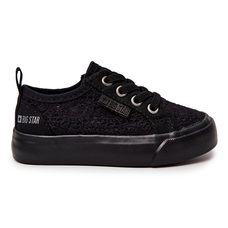 Big Star JJ374133 Tênis OpenWork - tênis preto, leve e elegante para meninas, combinando conforto com um acabamento de renda na moda. Perfeito para dias mais quentes - arejado, fácil de colocar, graças às gengivas adstringentes e à mistura bastante com estilizações de verão.