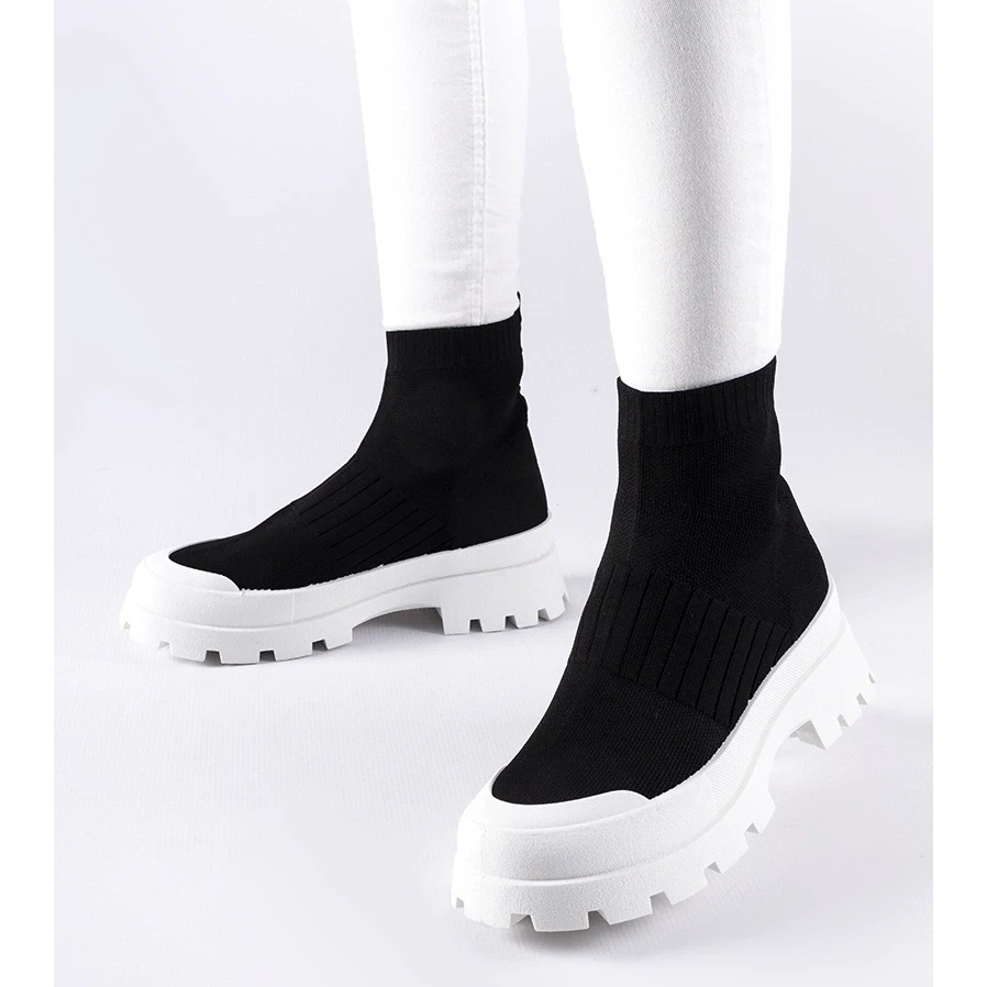 O tênis superior feito de material flexível adere perfeitamente à perna, o que oferece conforto e suporte extraordinários durante cada etapa. Além disso, seu design alto não apenas enfatiza a figura, mas também torna os sapatos extremamente confortáveis de usar. O elemento líder desse modelo é uma cadeia espessa e decorativa que lhes dá um gosto de moda e os faz se destacar na multidão.