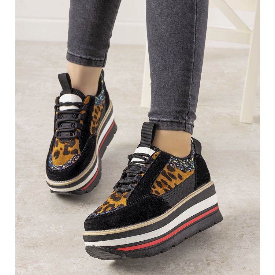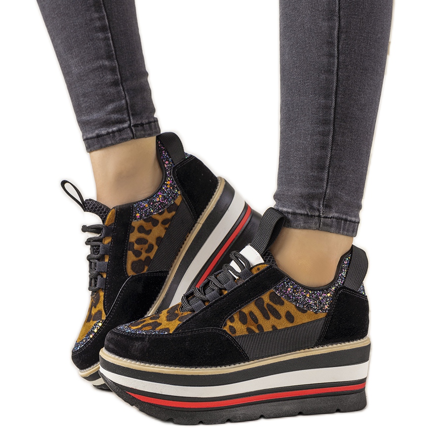 Os tênis pretos de sola alta da Debbi são a combinação perfeita de estilo e conforto que farão as delícias de todos os amantes da moda. Este modelo, enriquecido com um padrão leopardo único e brilhos subtis, destaca-se dos restantes modelos, atraindo a atenção e acrescentando carácter a qualquer estilo.
