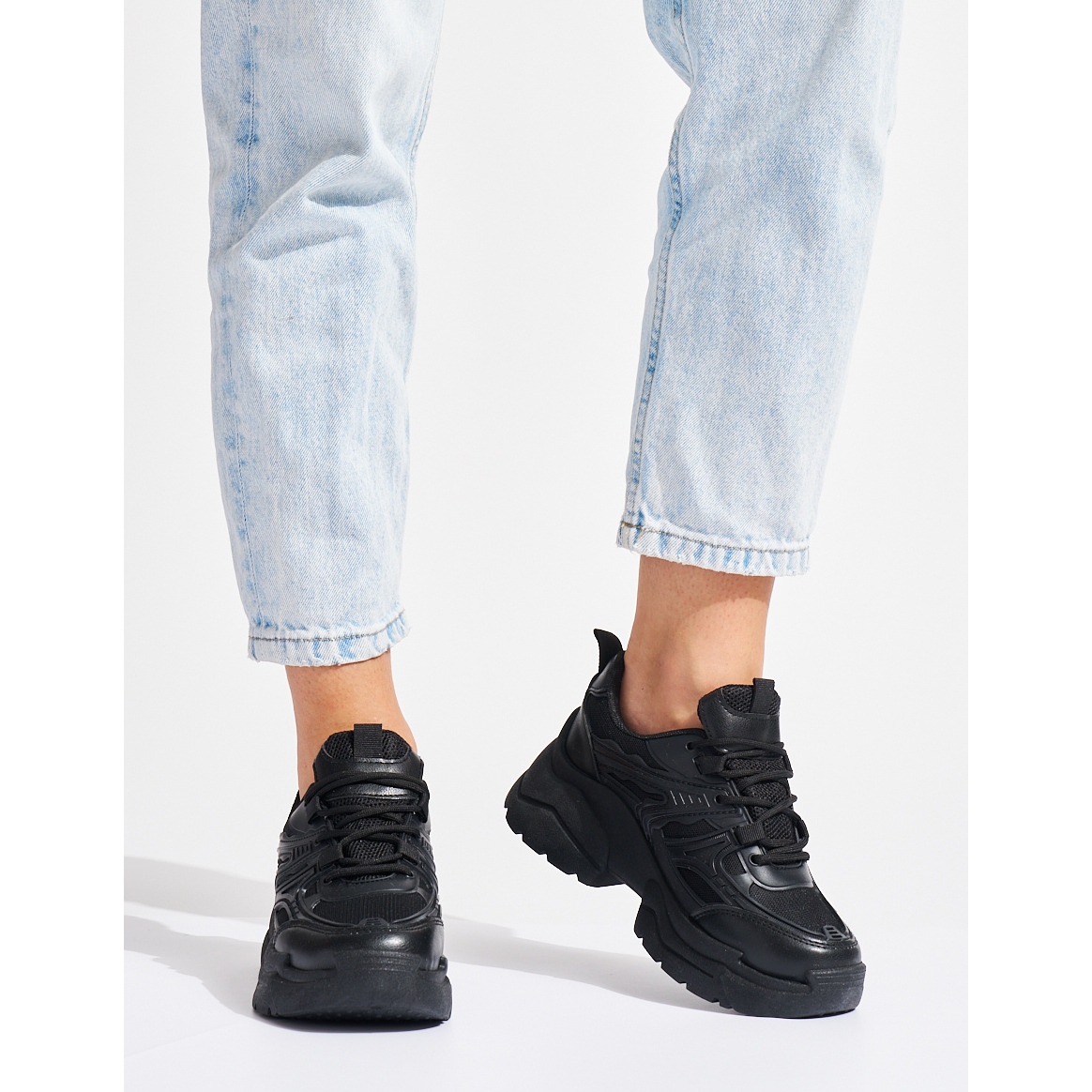 Escolha esses tênis pretos em uma sola grossa e enriqueça sua coleção com um elemento elegante e conveniente que enfatizará perfeitamente seu estilo!
