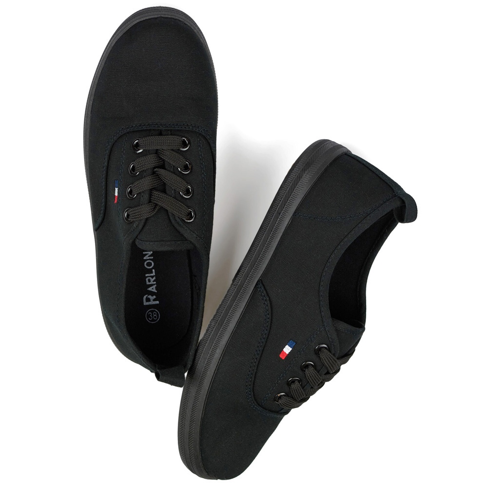 Detalhes: Tênis preto com sola preta, tênis feminino