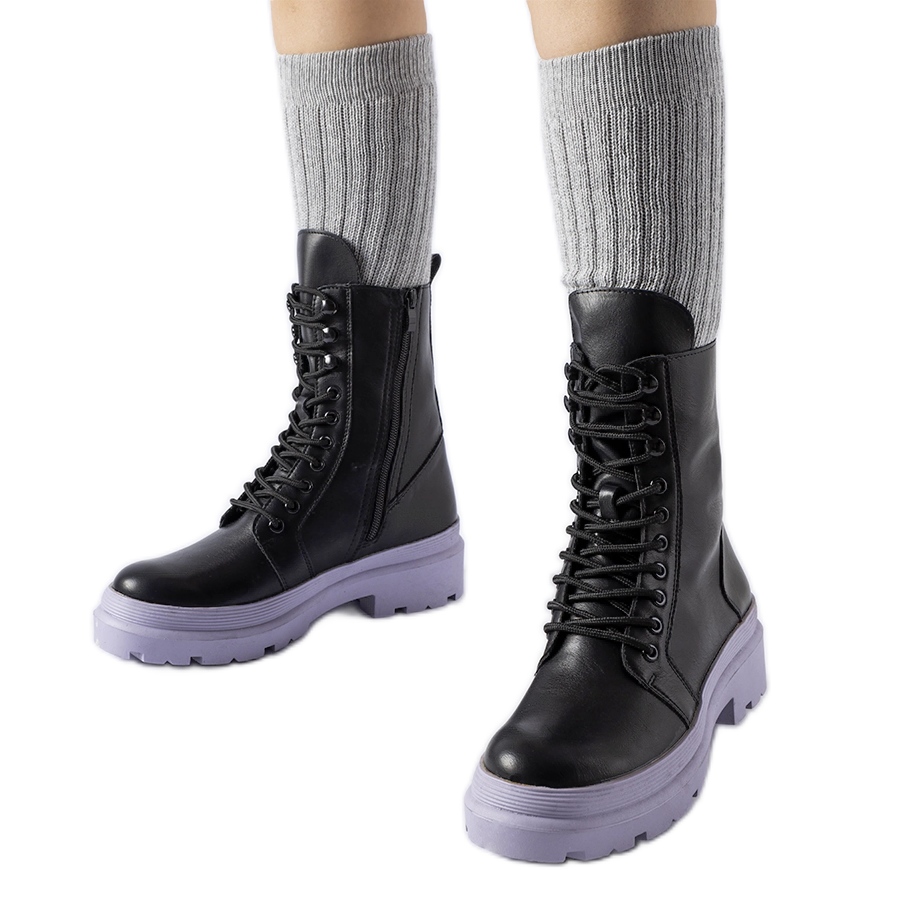 Botas pretas na sola colorida Quennie - botas elegantes e isoladas perfeitas para dias frios. O modelo MP326 combina design moderno com soluções práticas: o aquecimento suave fornece calor e uma sola sólida de borracha em roxo (nero/lavanda) adiciona caráter e melhora a adesão.