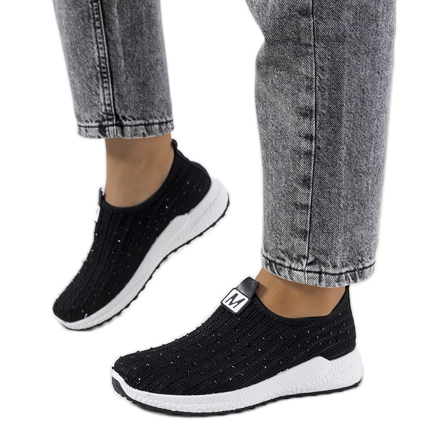 Tênis negros com zircões Maasje (Modelo TF2117) - Deve ter nesta temporada! Uma parte superior macia e material com um corte "meia" se adapta perfeitamente ao pé, proporcionando conforto ao longo do dia. A decoração suave de zircão acrescenta brilho e elegância, graças às quais os tênis são ótimos para estilizações casuais e mais de saída.