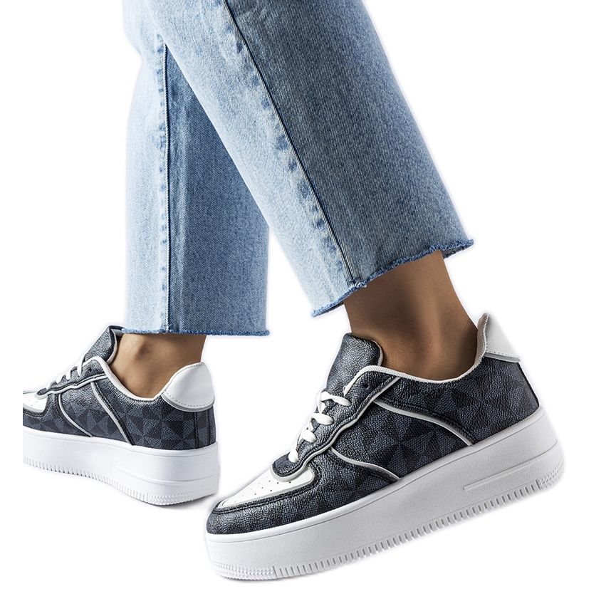 Estilos, universais e confortáveis-esses tênis negros com areias de monograma para não ter a temporada de primavera/verão. Os sapatos femininos baixos com um personagem urbano moderno são perfeitos para estilizações diárias - desde a camiseta até os vestidos arejados em uma edição esportiva.