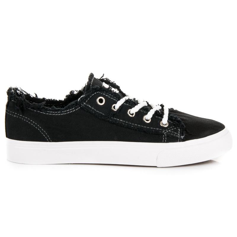 Apresentamos um modelo único de tênis preto que combina um design clássico com toques modernos. Estes sapatos extremamente confortáveis são a escolha perfeita para o uso diário, combinando com qualquer estilo. O acabamento desfiado do material acrescenta originalidade e o contraforte macio do calcanhar garante o máximo conforto durante o uso.