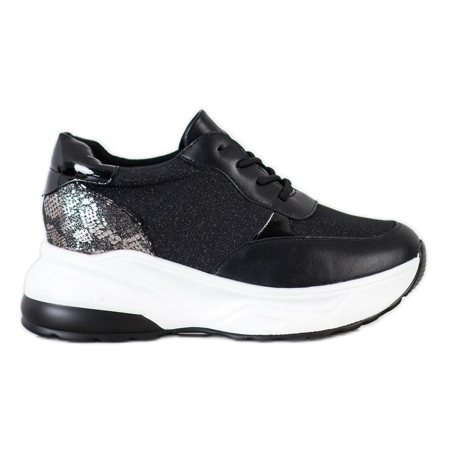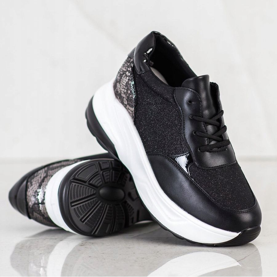 O Tênis Preto com Brilho do fabricante Bestelle é a escolha perfeita para mulheres que desejam aliar conforto a um acabamento estiloso. Estes sapatos pretos exclusivos, enriquecidos com glitter prateado, certamente atrairão a atenção e enfatizarão o estilo individual de cada mulher que os usar.
