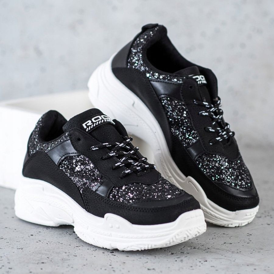 Os tênis pretos com glitter da SHELOVET são a escolha perfeita para mulheres ativas que desejam aliar conforto a um look fashion. Feitos de imitação de couro de alta qualidade, estes calçados esportivos baixos são perfeitos tanto para o estilo do dia a dia quanto para ocasiões mais casuais.