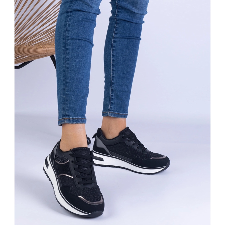 Detalhes: Tênis pretos decorados com glitter e zircões