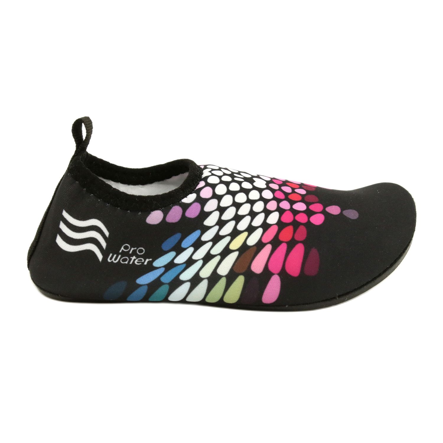 A sola aderente garante segurança mesmo em superfícies molhadas, protegendo os pés dos ouriços-do-mar e outras surpresas desagradáveis que podem aguardar na água. Além disso, estes elegantes sapatos pretos com o logotipo ProWater serão um ótimo complemento para qualquer roupa de praia.