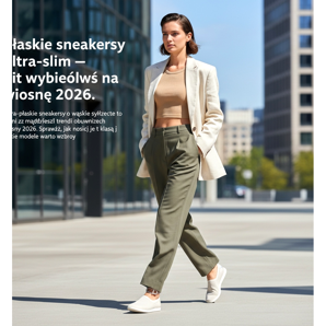 Modelos com um logotipo discreto e delicado no calcanhar ou na língua estão se tornando cada vez mais populares. Existem também versões interessantes com sola em cor contrastante e parte superior branca ou creme. Sapatos ultrafinos em bege nude com alfinete metálico ou detalhe nos cadarços também estão na moda para o verão 2026. Dê uma olhada na oferta da KeeShoes e escolha um modelo de tênis ultrafino que vai complementar o seu estilo de primavera!