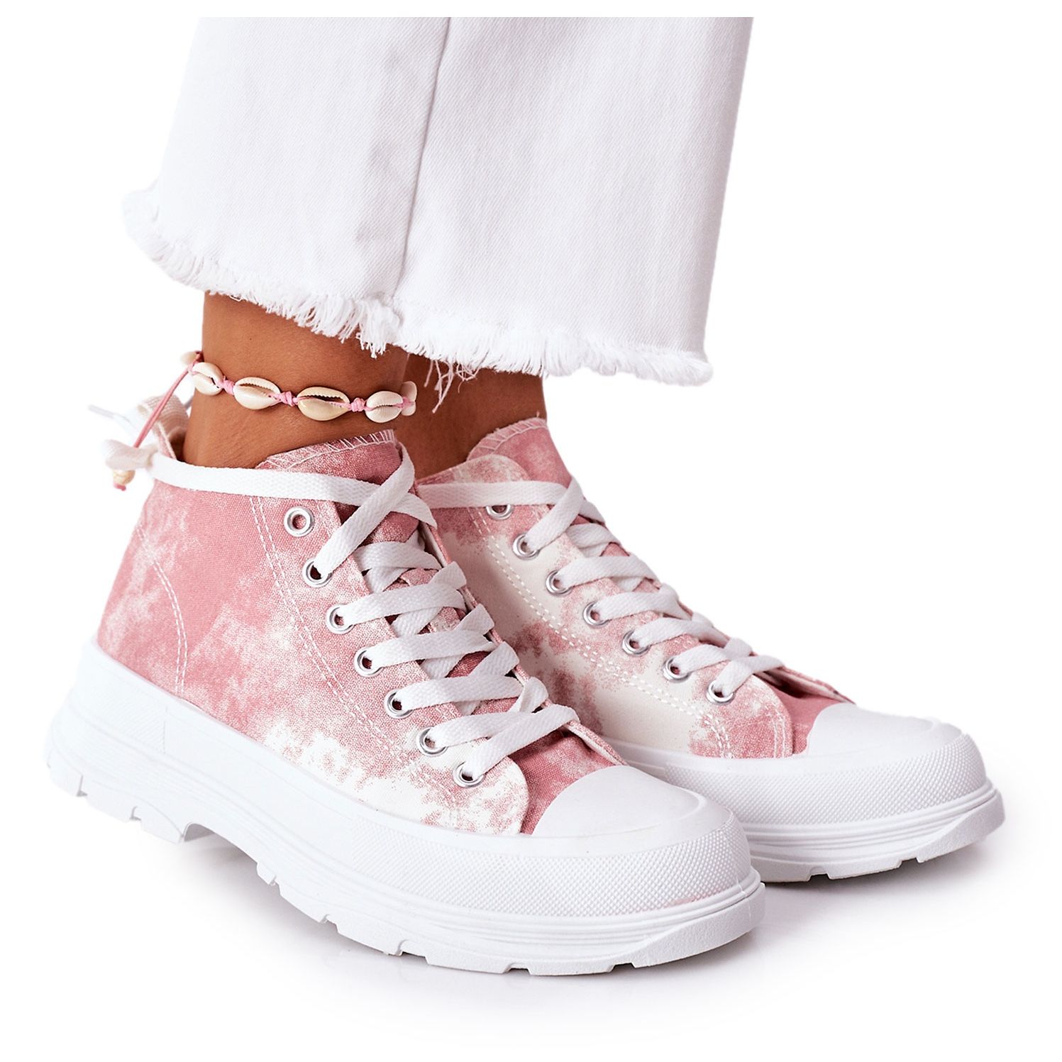 FJ1 FJ1 Tênis rosa alto com solado grande e efeito trissy tie-dye branco