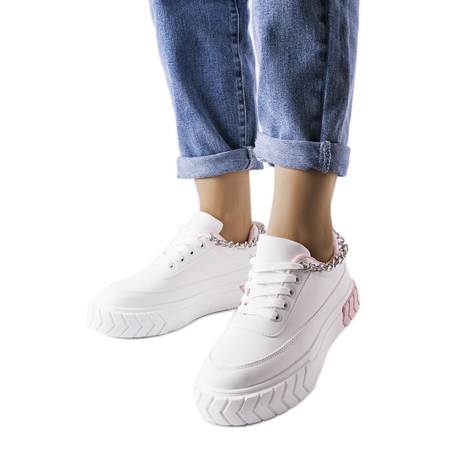 O tênis Thilda rosa com corrente é um modelo único que combina design moderno e conforto de uso. Criados a pensar nas mulheres, estes elegantes ténis da Inna Marka distinguem-se por uma elegante combinação de cores - rosa e branco, que se harmonizam perfeitamente entre si, conferindo aos sapatos um carácter moderno.