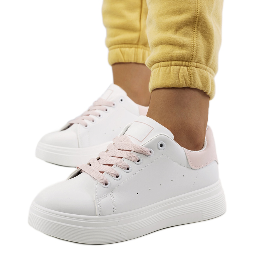 Detalhes: Tênis rosa e branco na plataforma Justar
