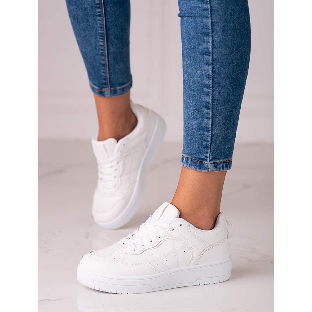 SHELOVET Tênis Shelovet esportivo clássico feminino feito de couro ecológico em branco