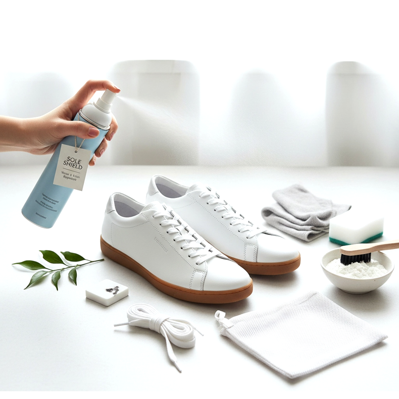 Tênis finos e brilhantes são lindos, mas requerem cuidados regulares. A base é a proteção contra sujeira logo após a compra: o spray impregnante para tecidos e couro é uma etapa obrigatória antes do primeiro uso. Aplique uniformemente e deixe secar antes de sair de casa.